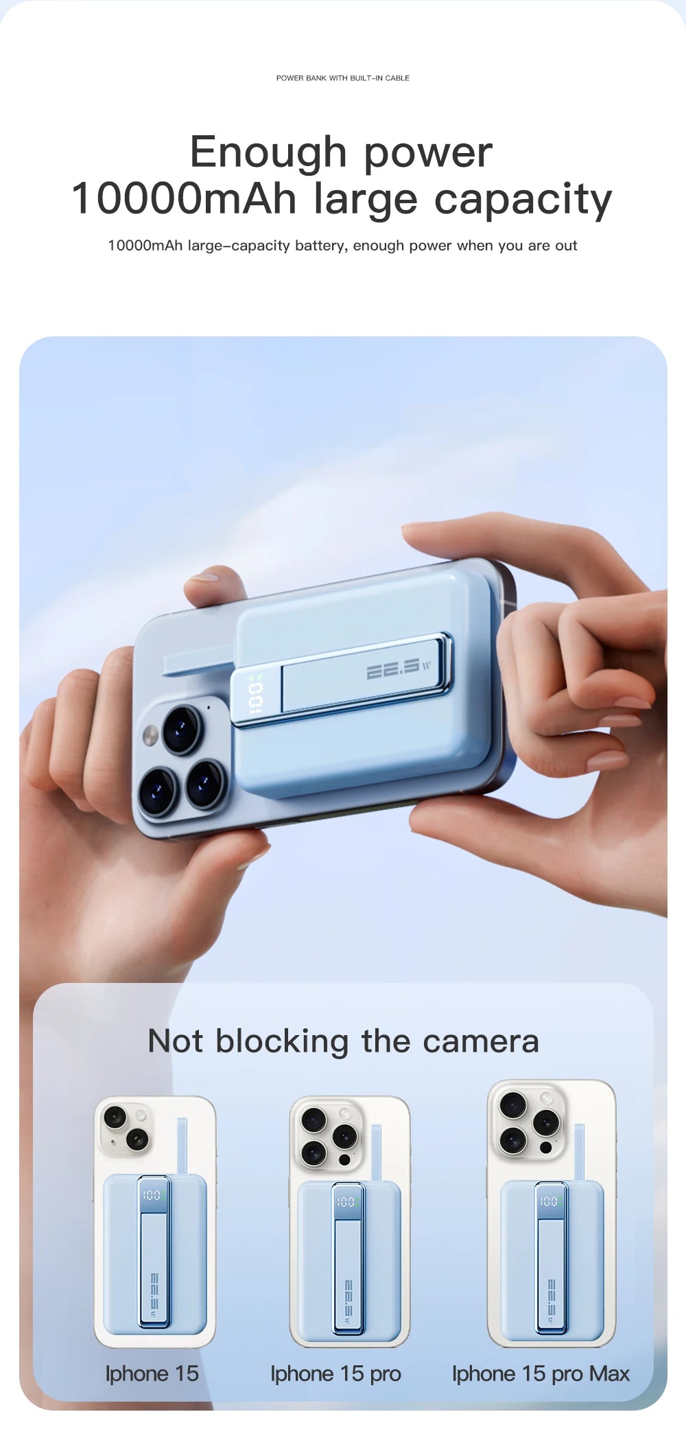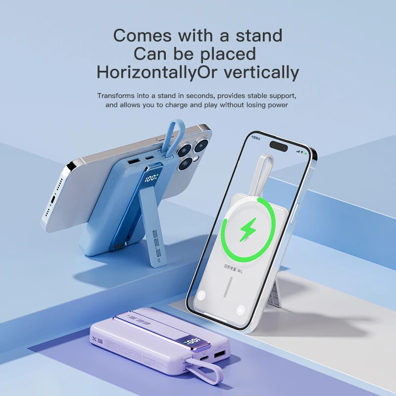 feature: For Magsafe Powerbank,with cable lighting + Type-c,with phone holder,With digital display,Support Wireless Charger