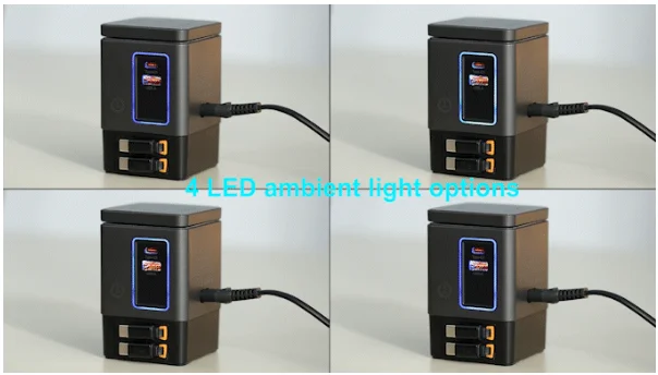 - Running lights for active charging status.