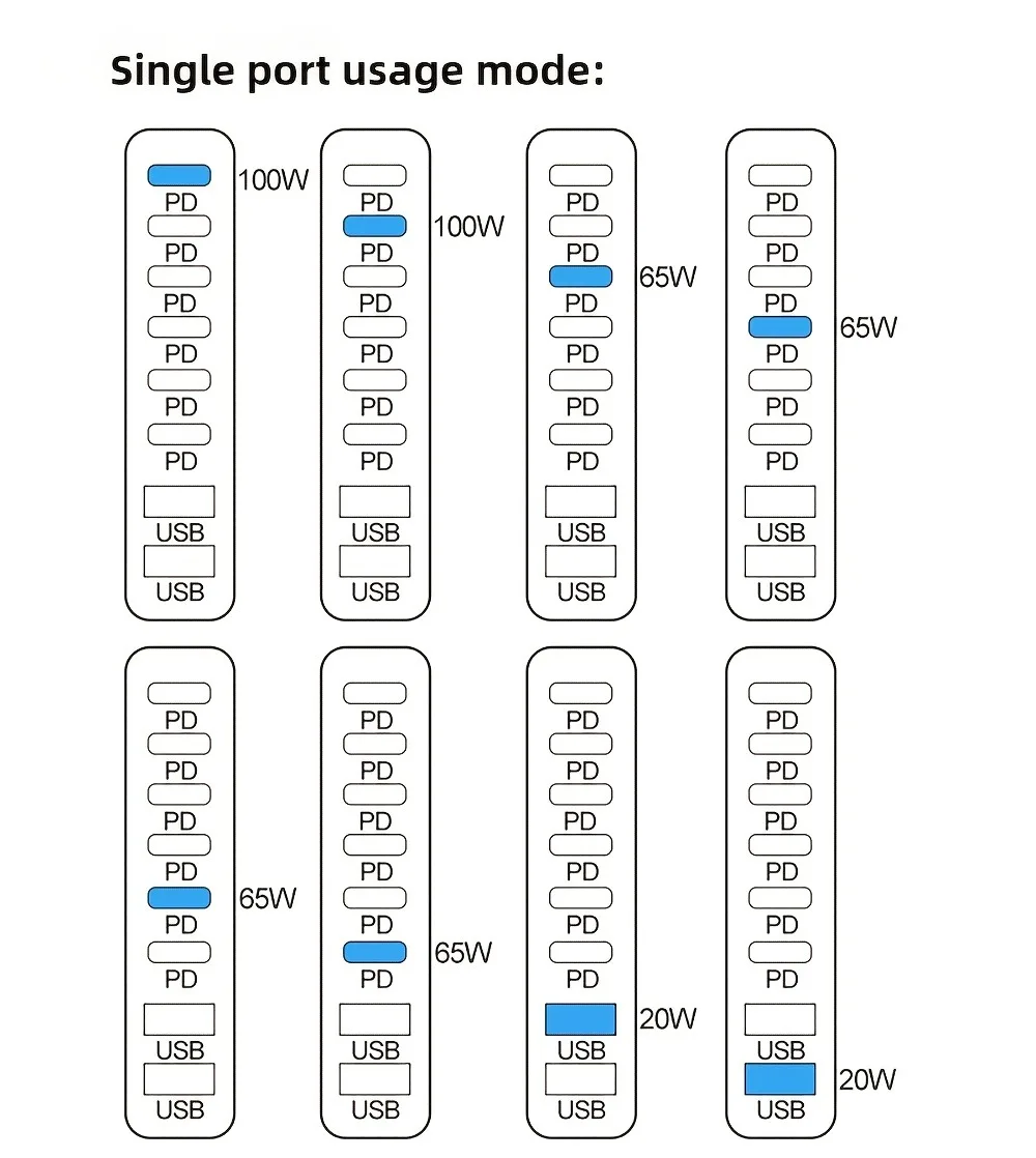 500W 8-Port Desktop Charger Station PD 100W and QC 20W Fast Charging Hub for Cellphones, for iphone, for MacBook LED Indicator