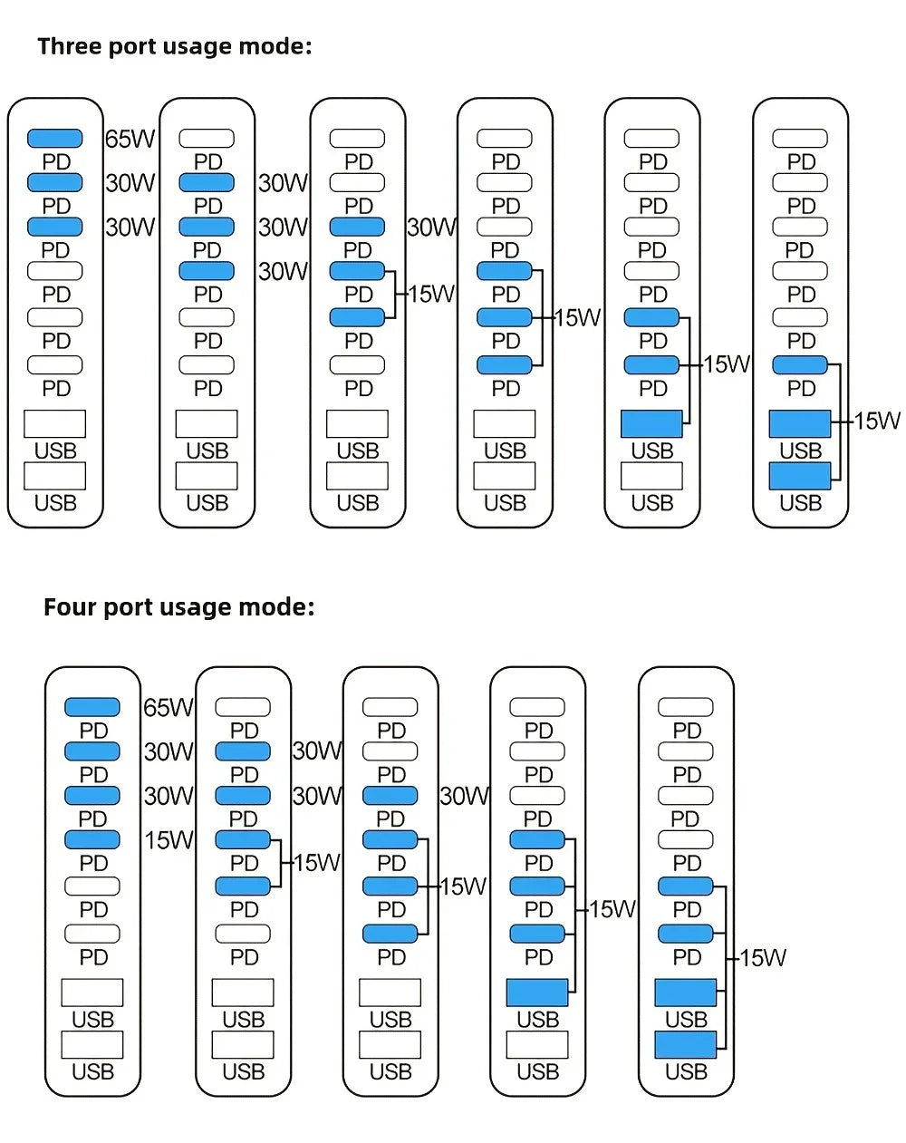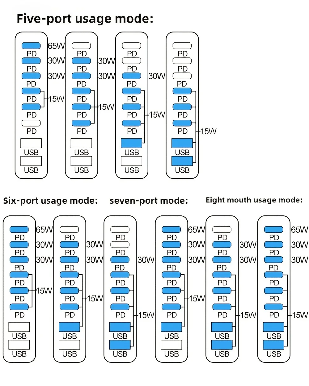 Output Interface: USB,Type C,2 A Ports,3 C Ports+