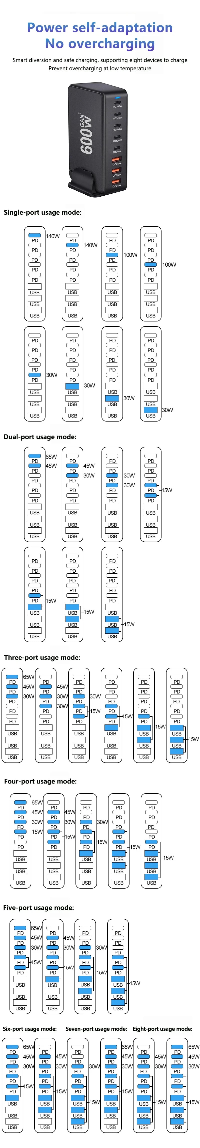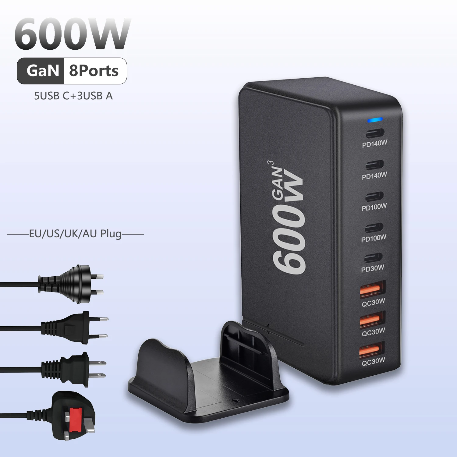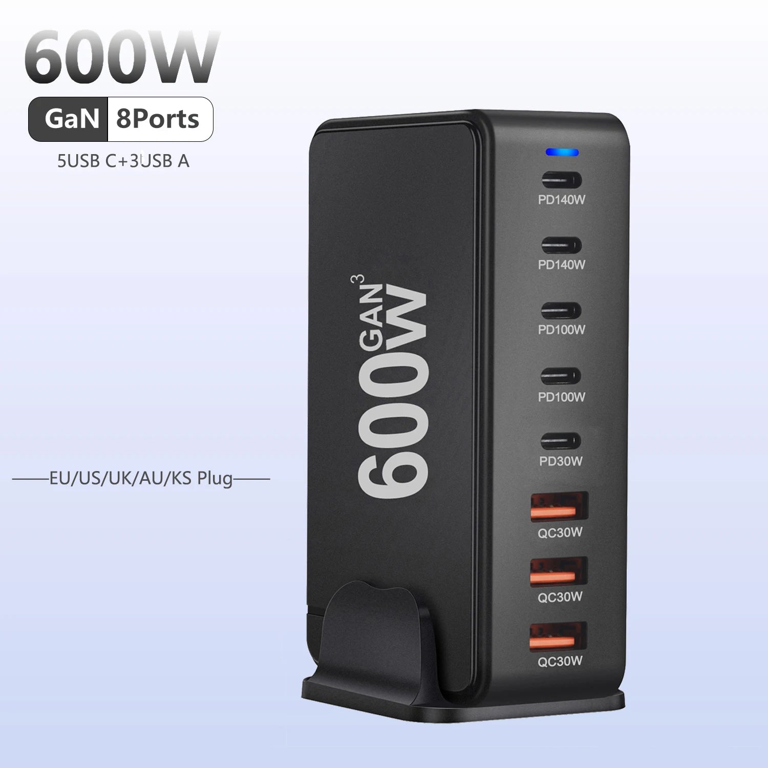 600W Desktop Charging Station USB C 8 Ports Fast Charger for Multiple Devices with 5 USB-C + 3 USB-A Chargers PD PPS 140 W
