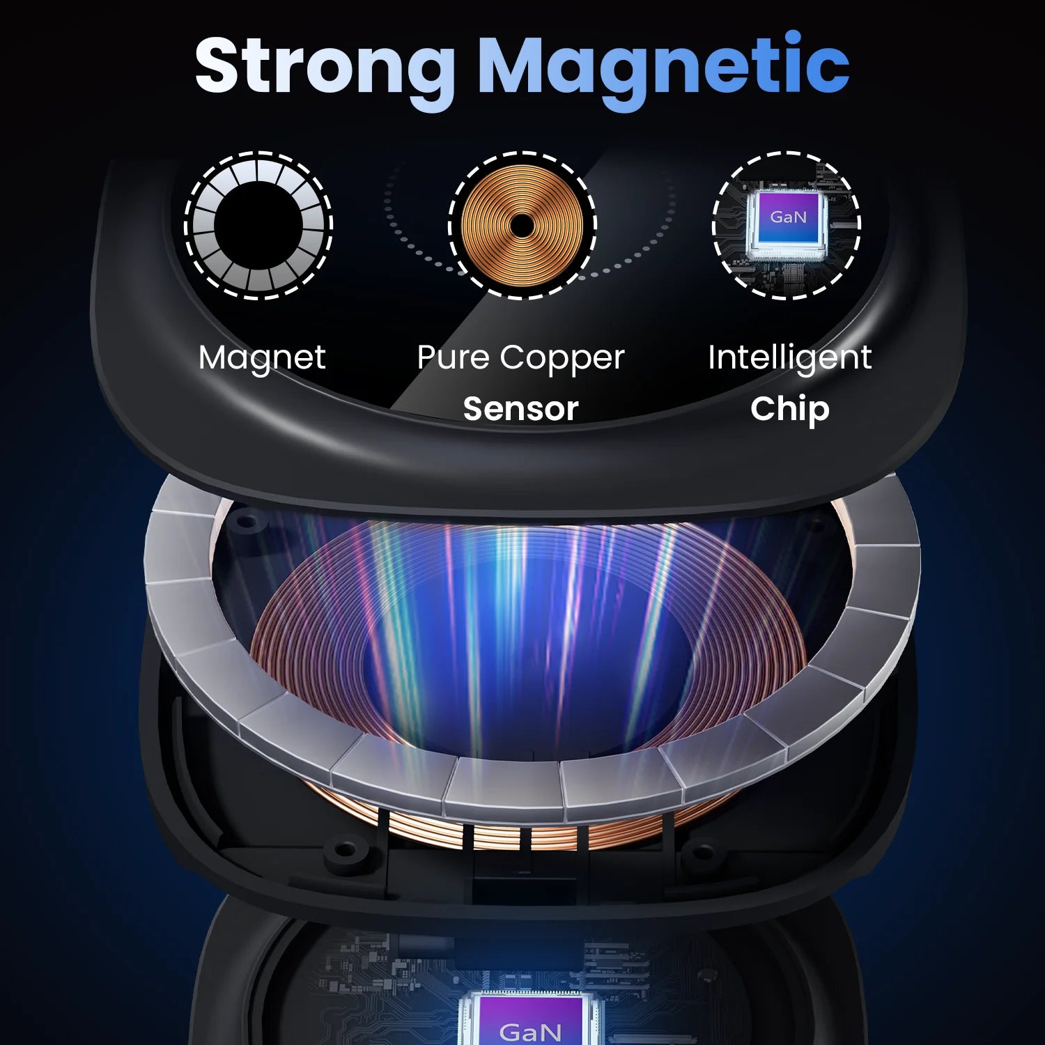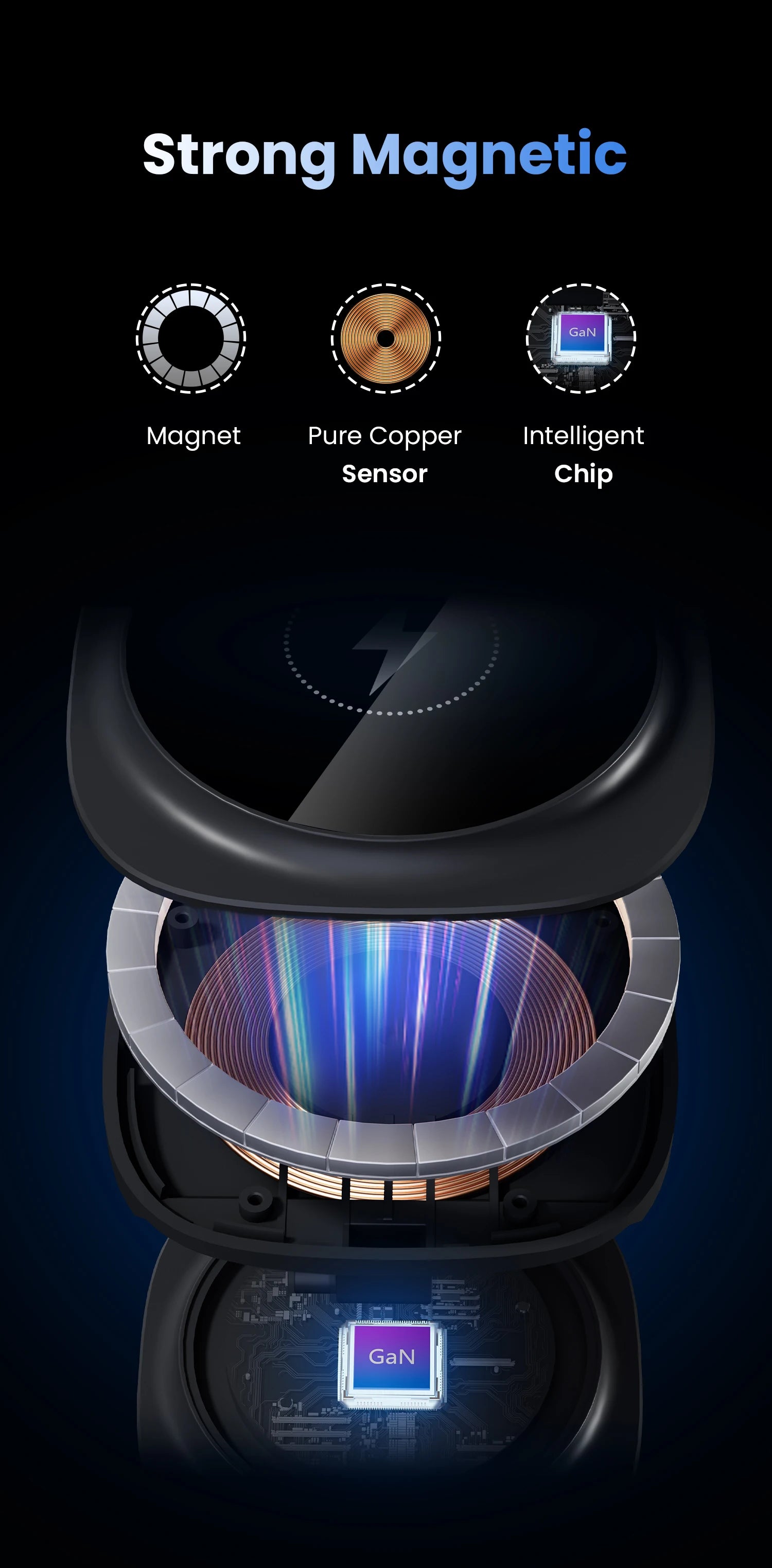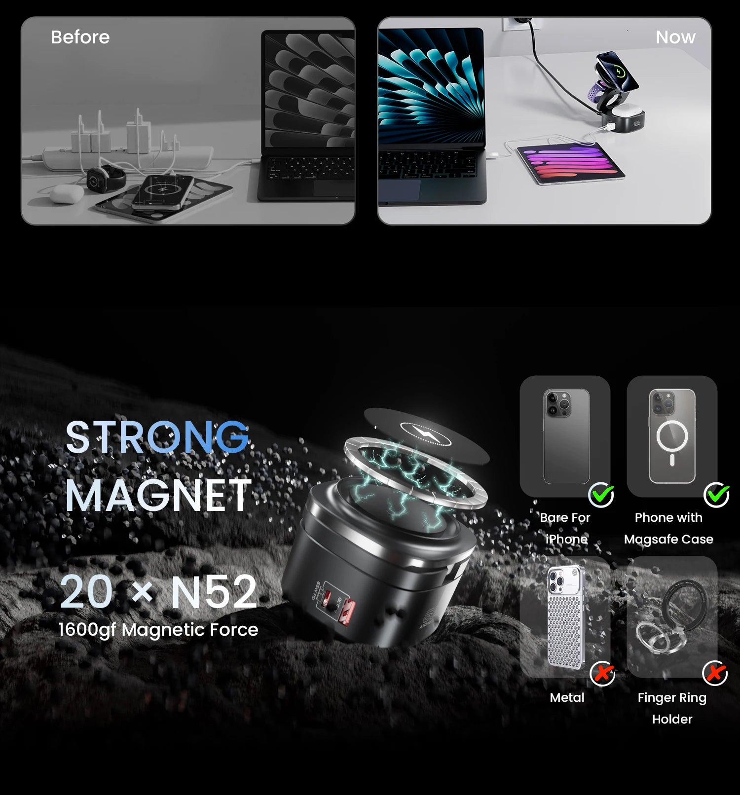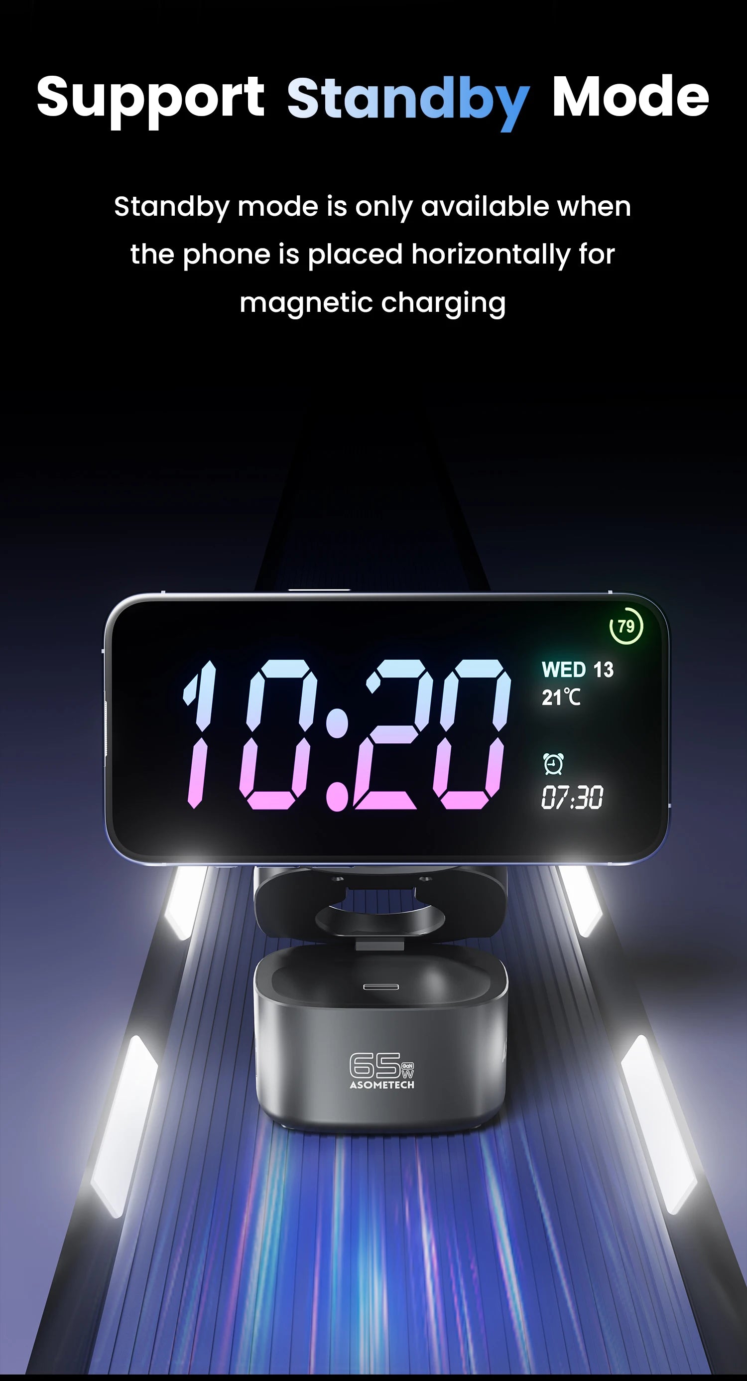 Note : It supports fast wireless charging for most mobile phones equipped with wireless charging functionality. If you wish to experience the magnetic wireless charging feature, you need to attach a magnetic wireless charging phone case to your mobile phone before you can perform magnetic wireless charging.