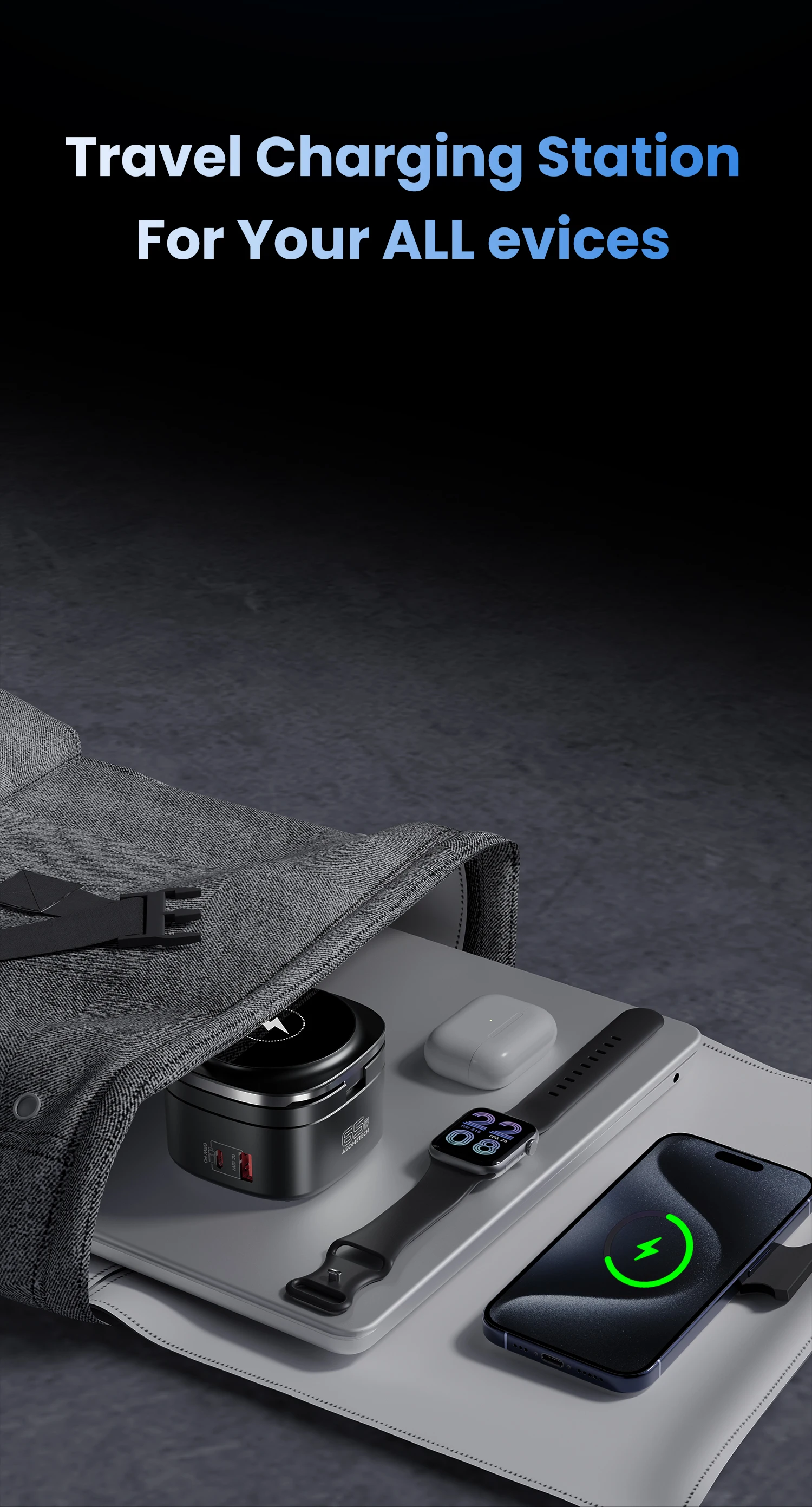 【All in one charger for apple devices】: The compact design of this GaN USB Wireless charging station lets you fulfill all your device charging needs with one device! this magsafe charging station is now possible to charge up to 5 devices at the same time, saving your space.Folding design.suitable for travel,home, office.