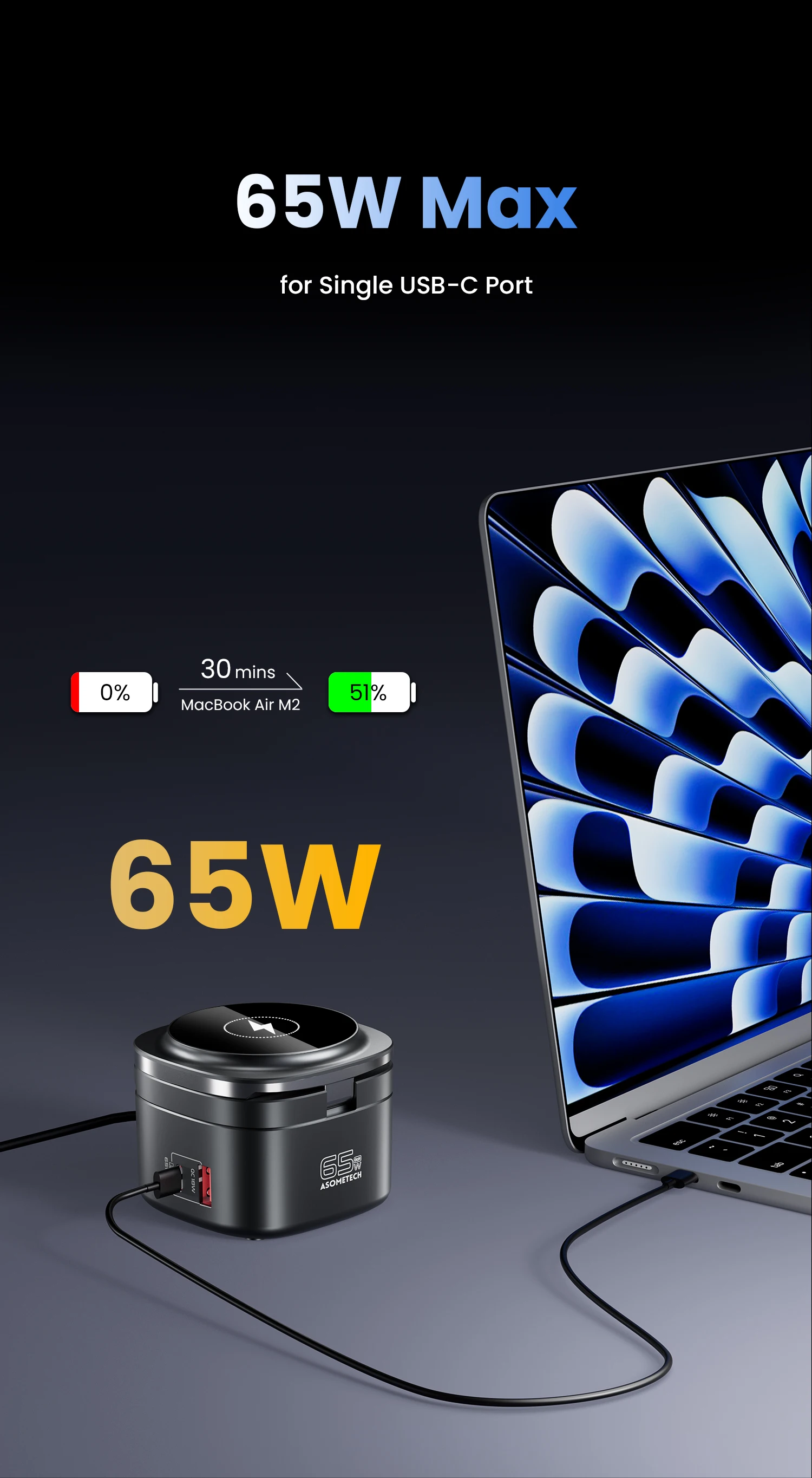 【65W GaN USB C Charging Station for Laptops】: This desktop multi-port charging station is the perfect solution for charging multiple devices! 65W USB-C ports designed specifically for charging laptops, It can charge a MacBook Air M2 from 0% to 51% in less than 30 minutes.65W USB-C port have 65W-PD3.0,QC3.0,PPS,AFC,FCP Fast charging protocols,Fast Charging for macbook iPad iPhone Samsung Xiaomi Huawei and more;Super Fast Charging 2.0 for Samsung;