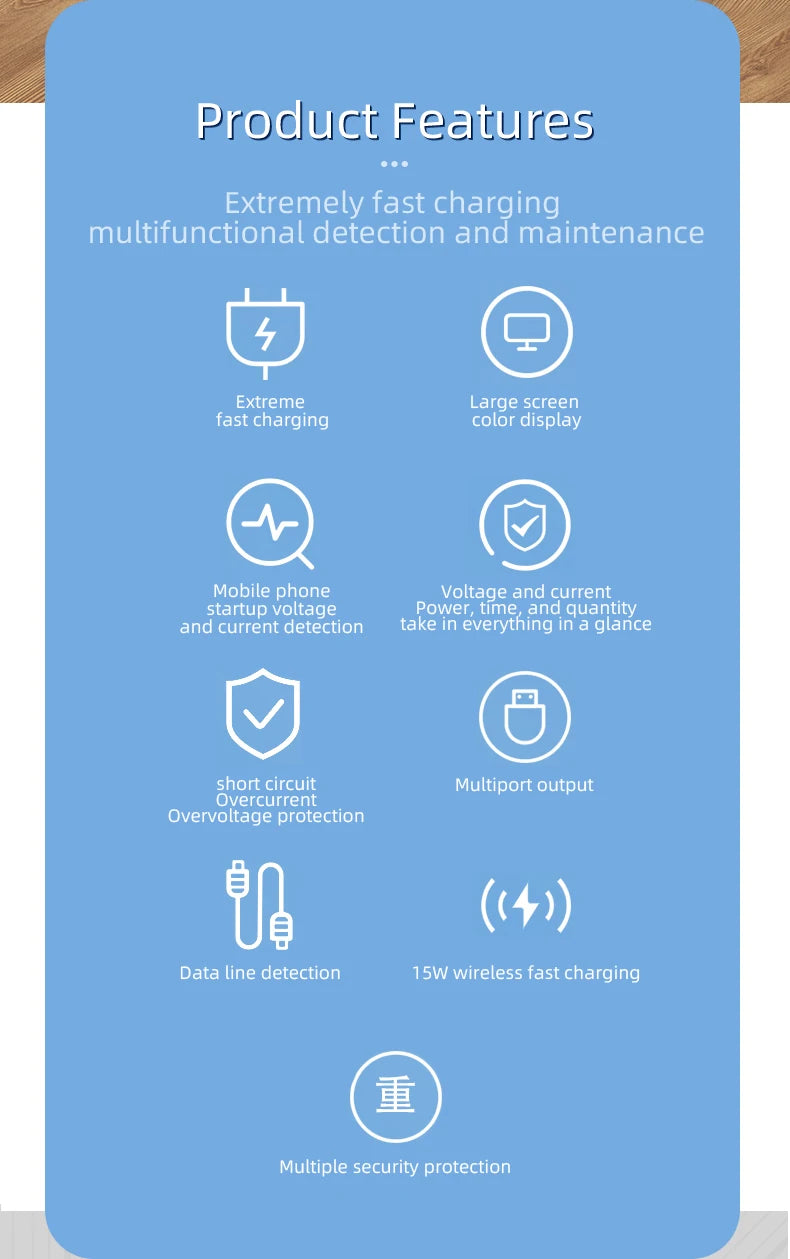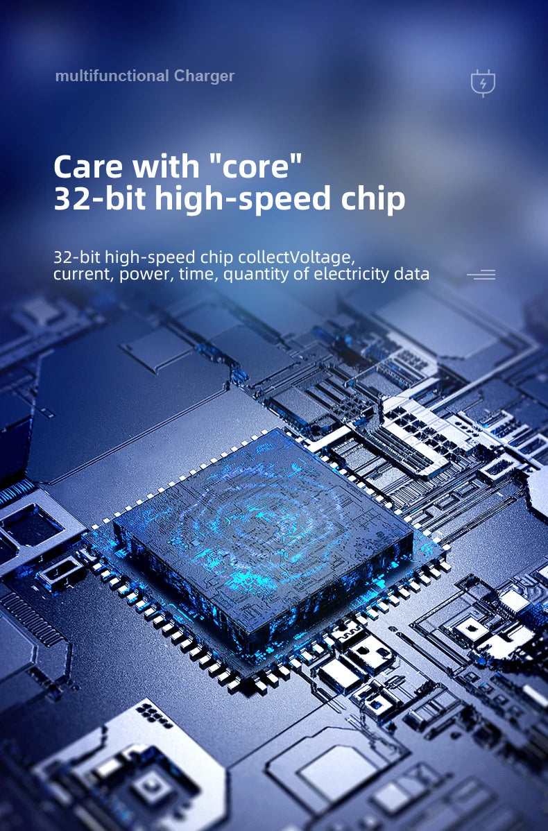 • Display Screen:The charger has a display screen that shows the charging status of each port, making it easy to monitor the progress of your devices.