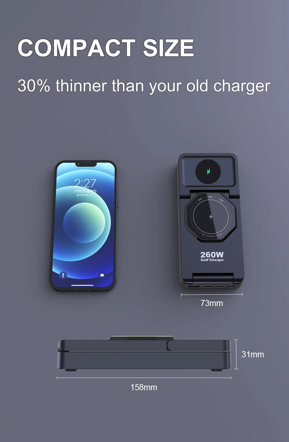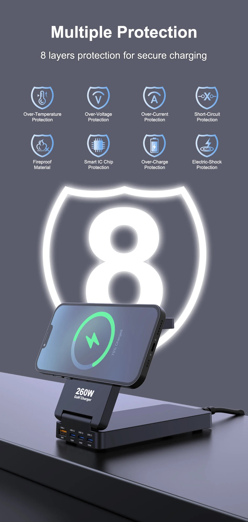Whether in the office, at home, or during travel, our 260W desktop charger can meet the charging needs of your device.