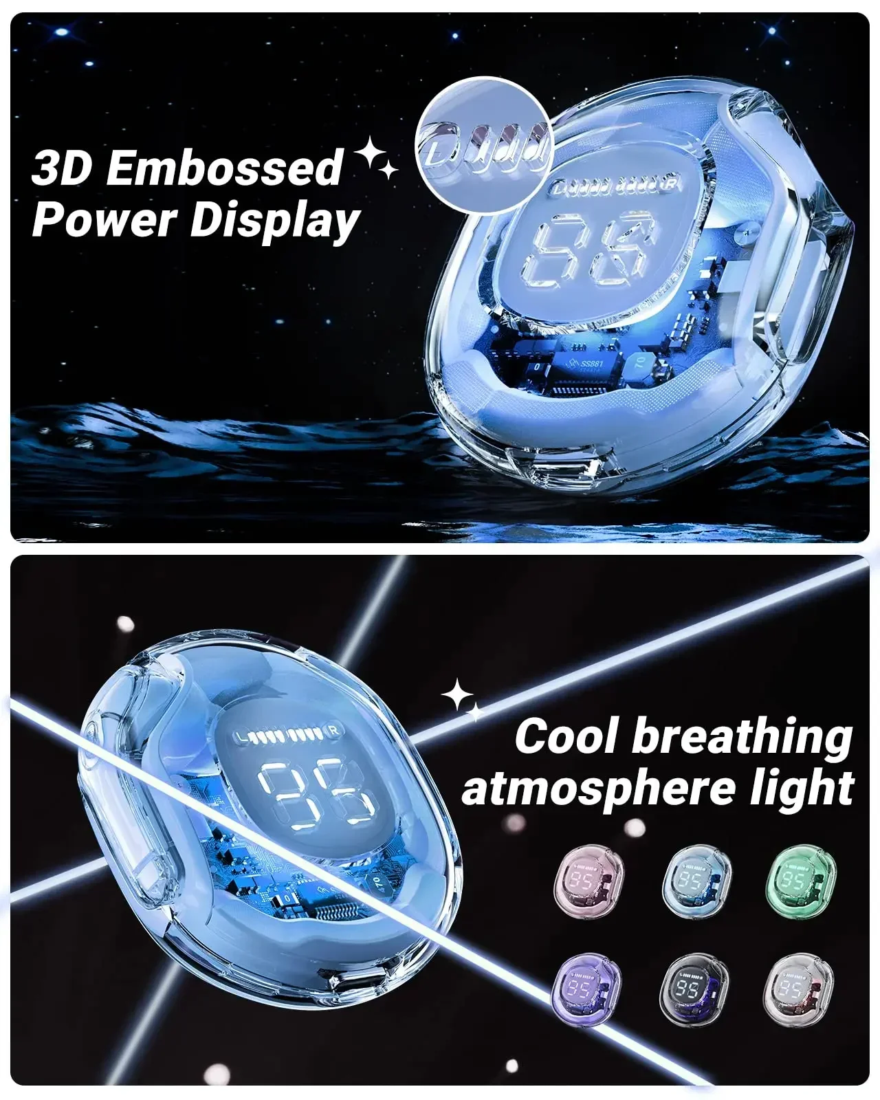 Bluetooth Earbuds Transparent with LED Digital Display Wireless In-Ear Earphone for Xiaomi Huawei iPhone Headphone