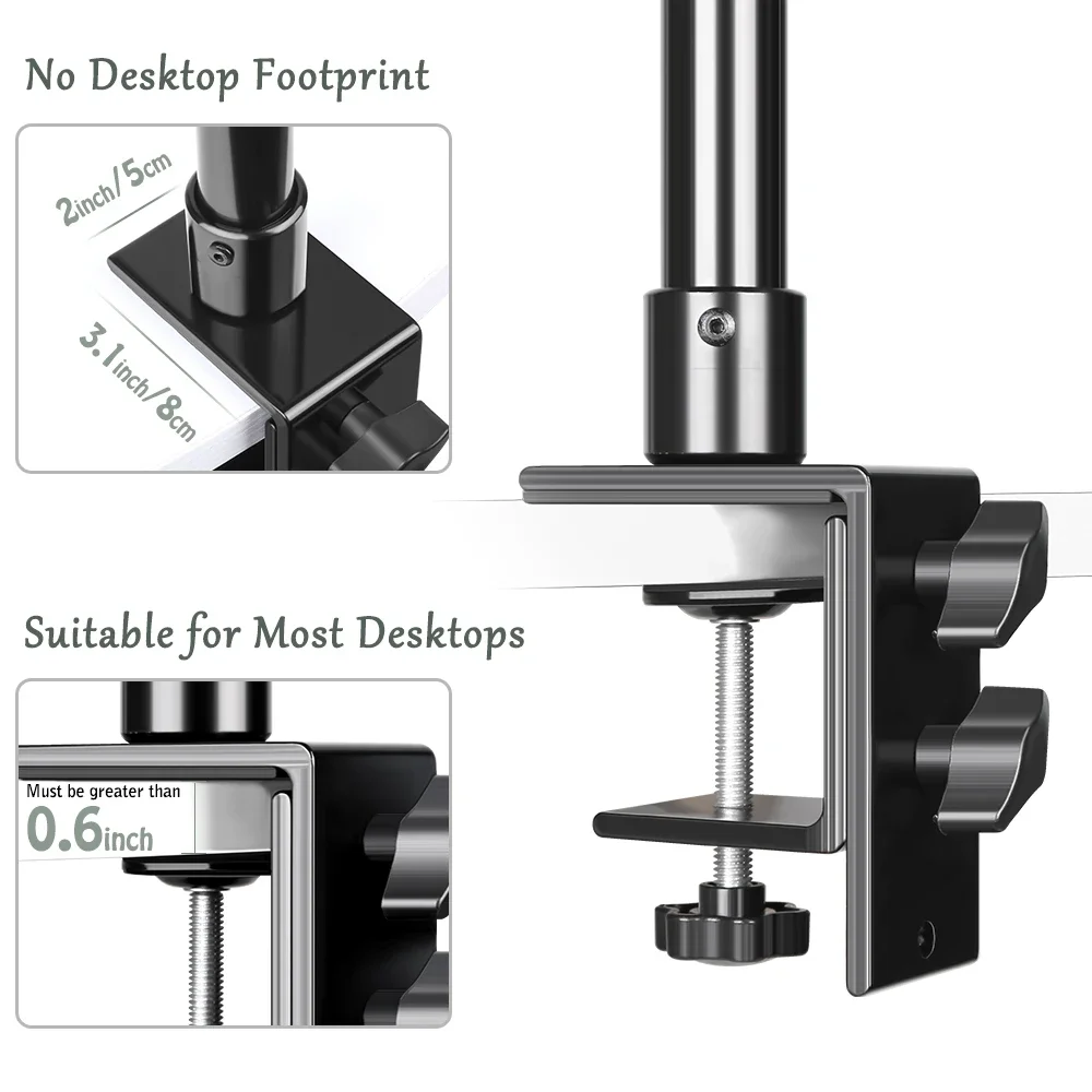 Save Space: Camera Desk Mount Stand - you can fix the C-clamp on the desktop, Adjustable C-clamp can support the thickness of the worktable from 1.5cm to 10cm.