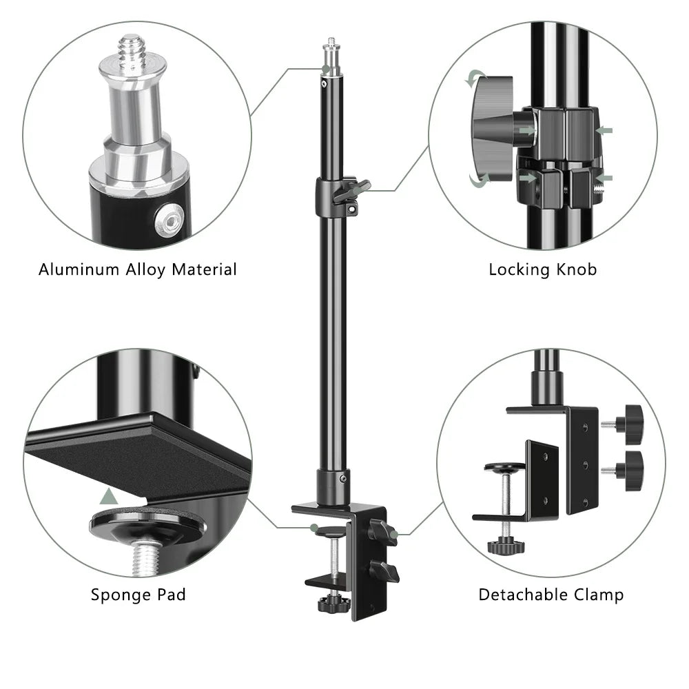 Desk Mount Stand,Adjustable Table Aluminum Light Stand With Standard 1/4 Screw Tip for DSLR Camera, Ring Light, Video Light