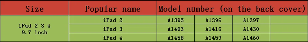 Model Number: For Apple ipad 2 / 3 / 4