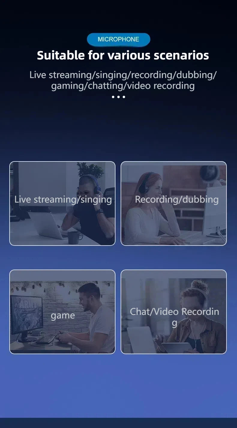 ▶Multi-device & Compatibility: The condenser microphone can be easily used on PC ,Android or iPhone(Need to convert plug),Laptop,PS4 and MAC,Plug'n Play.Perfect for vocals,vlogs, podcasting, gaming, interviews, field recordings, conference calls.