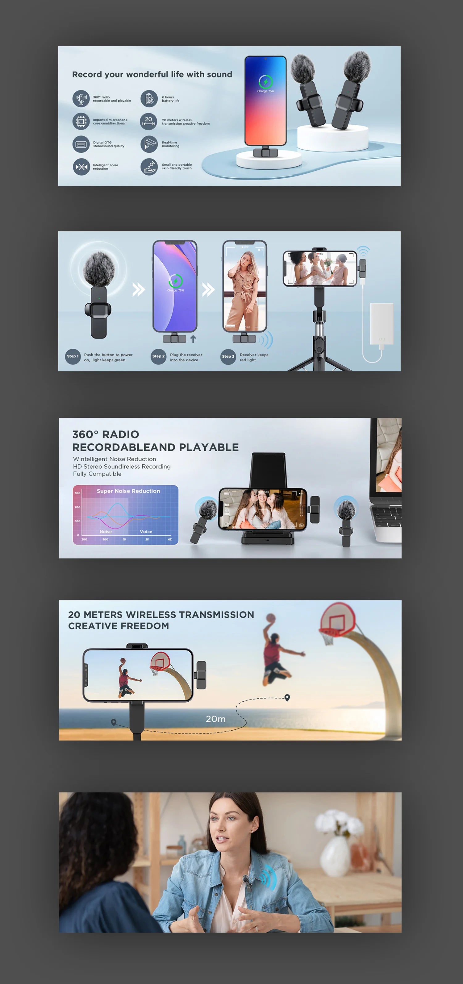 New Wireless Lavalier Microphone Portable Audio Video Recording Mini Microphone for iPhone Android PC Camera Live Gaming Phone