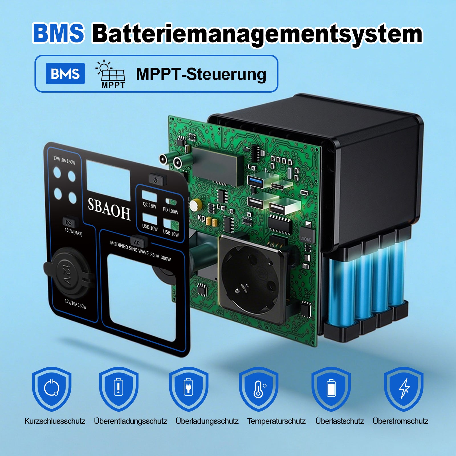 SBAOH Portable Power Station 300W,solar Power Generator 296Wh 80000mAh,solar Power Bank Portable Charger