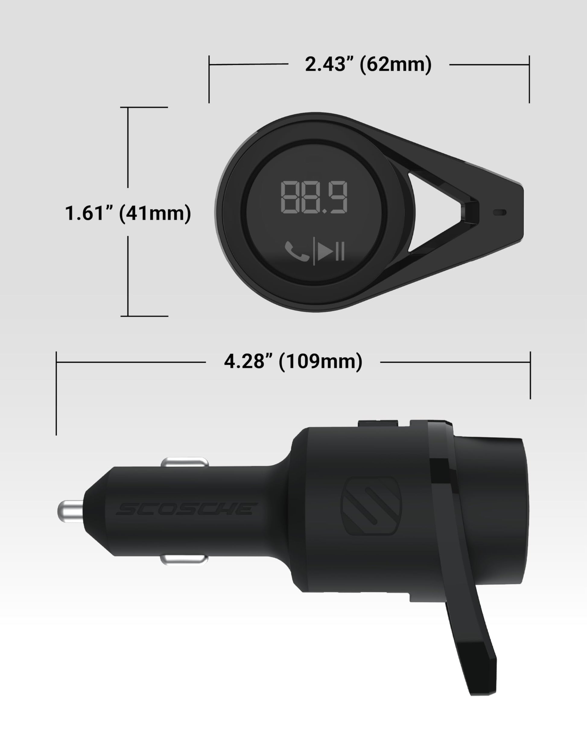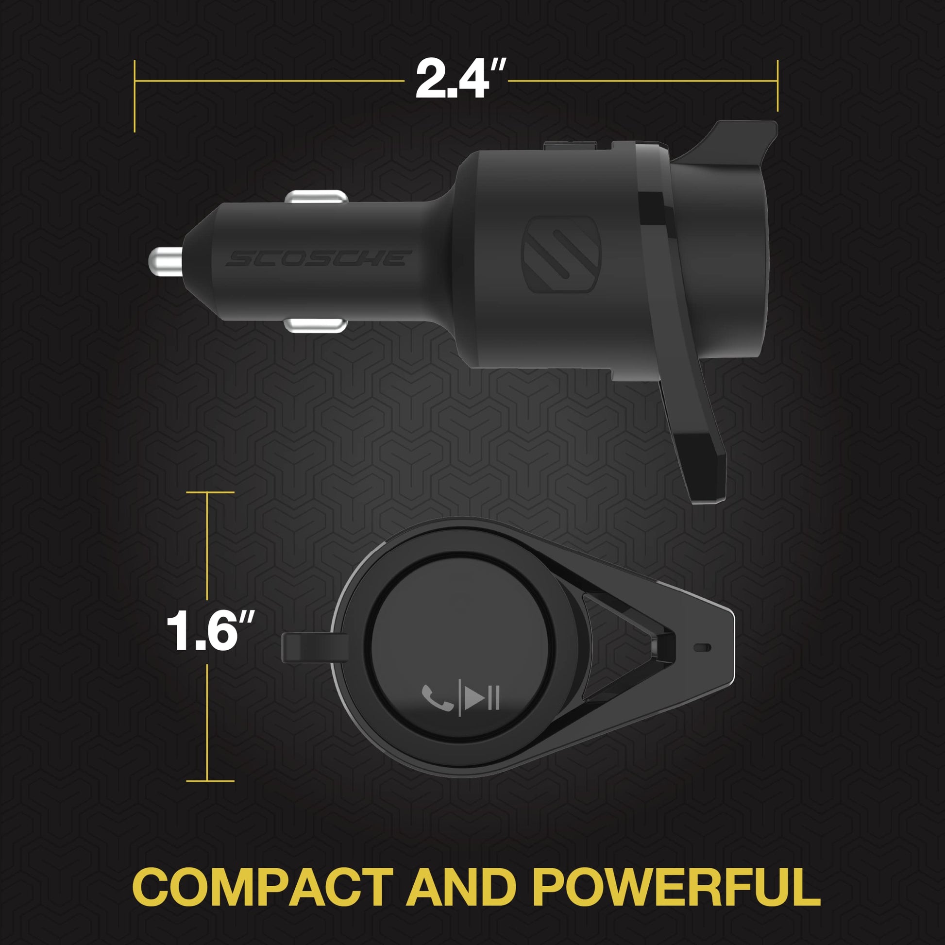 - Easy Installation: The Scosche BTFM5 is designed for easy setup, with no complicated installations or tools required. Just plug it into your car's 12V power outlet, pair it with your device, and you're ready to go!