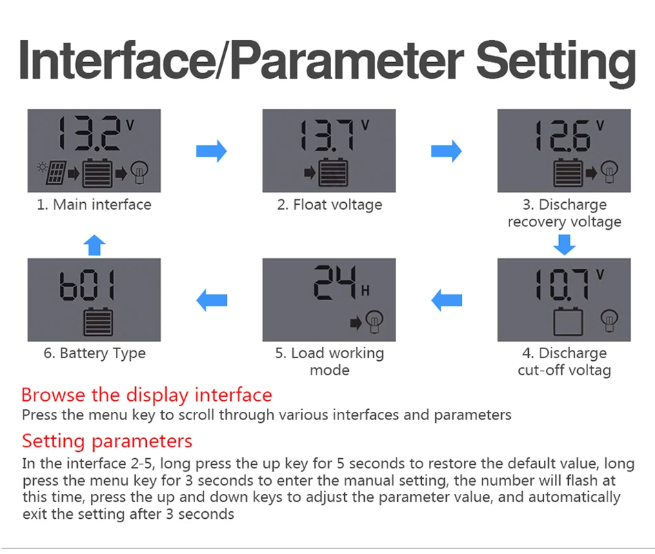 3: The controller can be used for lead-acid batteries and lithium batteries. If you charge a lithium battery, you must set the charging parameters after connecting to the power source. Please refer to the manual for details.