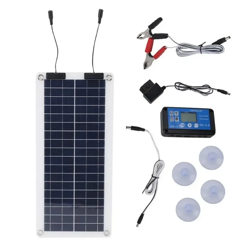 Solar Panel Charger 100W Waterproof Trickle Charger Solar Battery Maintainer Dual Output For 12V-24V Car RV Boat Motorcycle