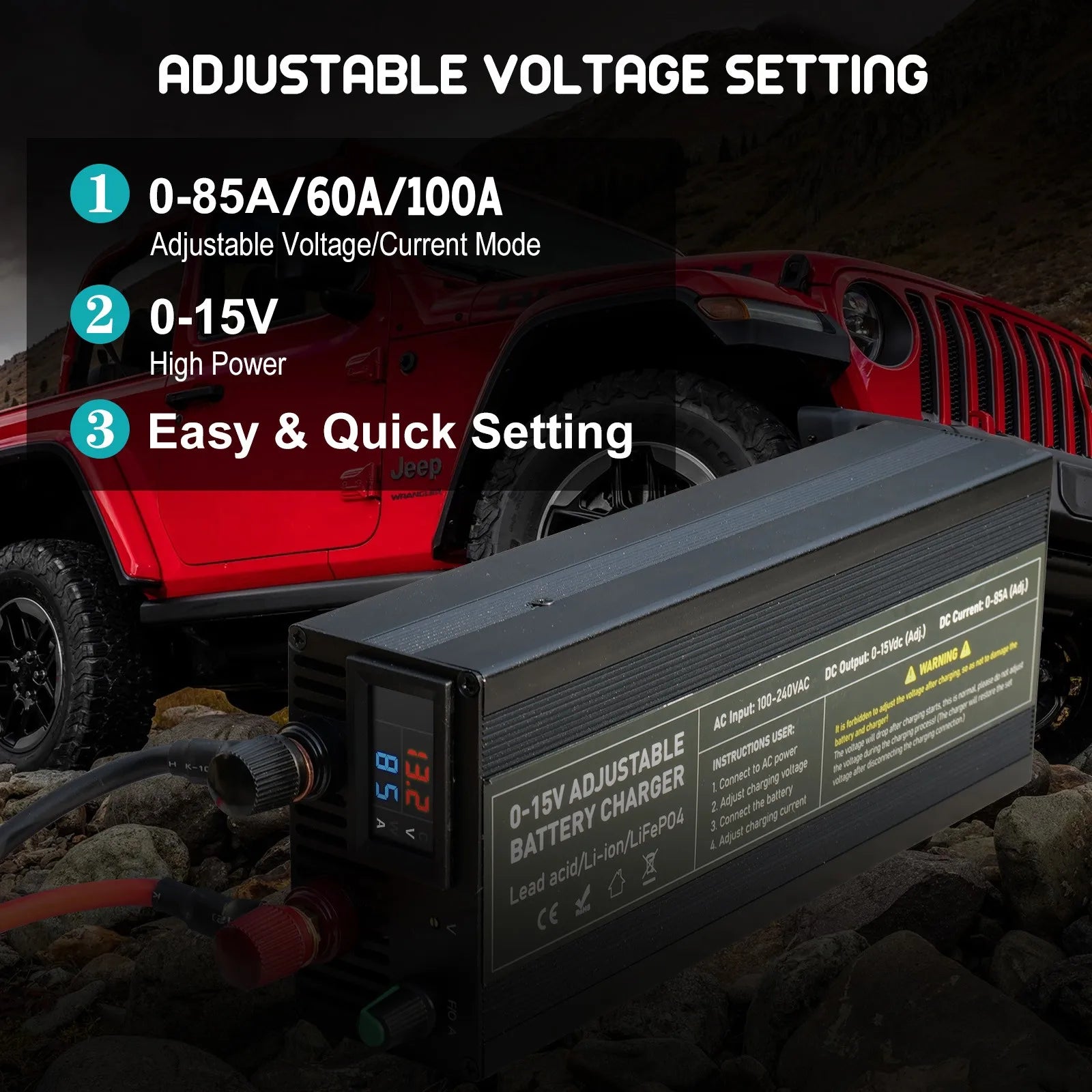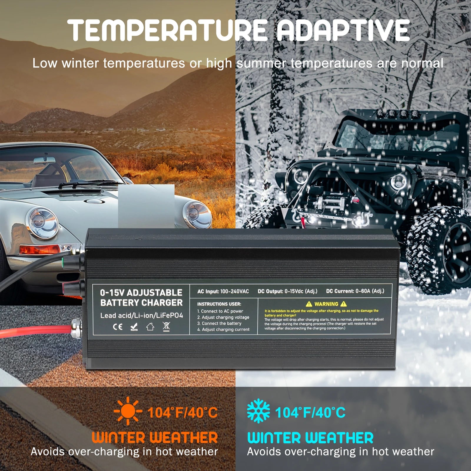 Solar System Charger 12V 60A Lifepo4/Lithium Battery Power Adapter 60A 12.8V Adjustable Current/Voltage Battery Accessories