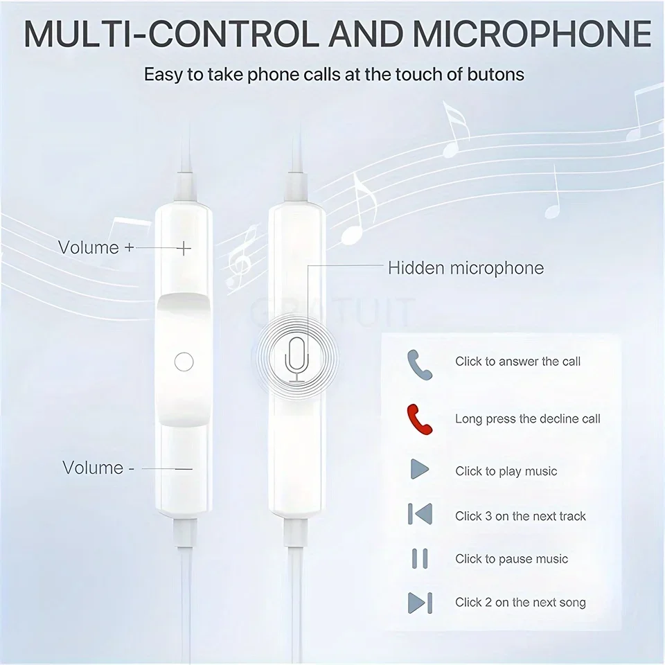 Wired Headphones With Microphone, For IPhone, IPod, IPad, Lightweight Headphones With Volume Control 6.35mm Headphone Jack
