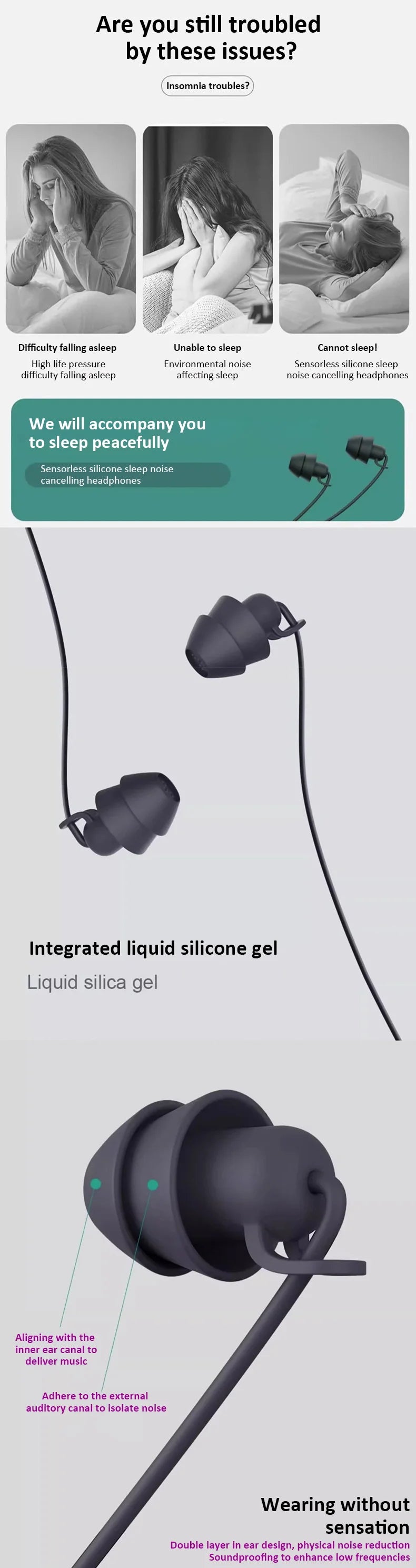 Wired Sleep Earphones 3.5mm-Pin In Ear Soft Headsets Noise Cancelling Wired Headphone with Mic Bass HiFi Stereo Silicone Earbuds
